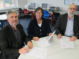 Die Unterzeichnung erfolgte im Berufsorientierungsbüro der Schule durch die Schulleiterin Frau Kleimann, Herrn Sahler für die Caritas und Herrn Singbeil vom DRK.